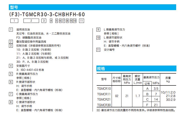 TGMCR10-3-AH-60,TGMCR10-3-AE-60,TGMCR10-3-BH-60,TGMCR10-3-BE-60,TGMCR疊加型遙控操作用溢流閥
