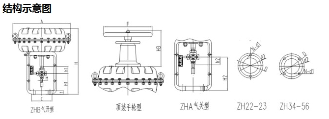 作用形式ZHA型:正作用,氣關(guān),當(dāng)氣壓增加時(shí),閥桿部件向下移;