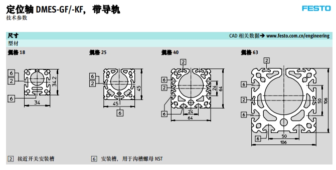 DMES-18-500-GF,DMES-25-500,DMES-40-500,DMES-63-500,festo定位軸