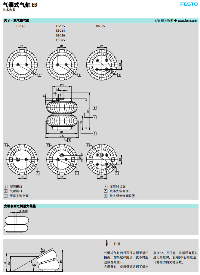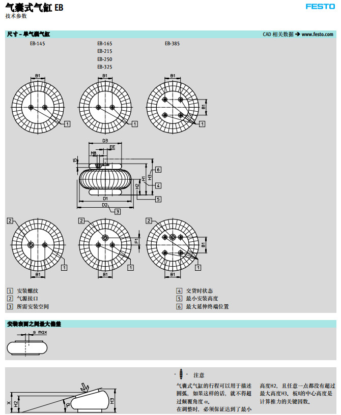 EB-145-60,EB-165-65,EB-215-80,EB-250-85,EB-325-95,EB-385-115,festo氣囊式氣缸