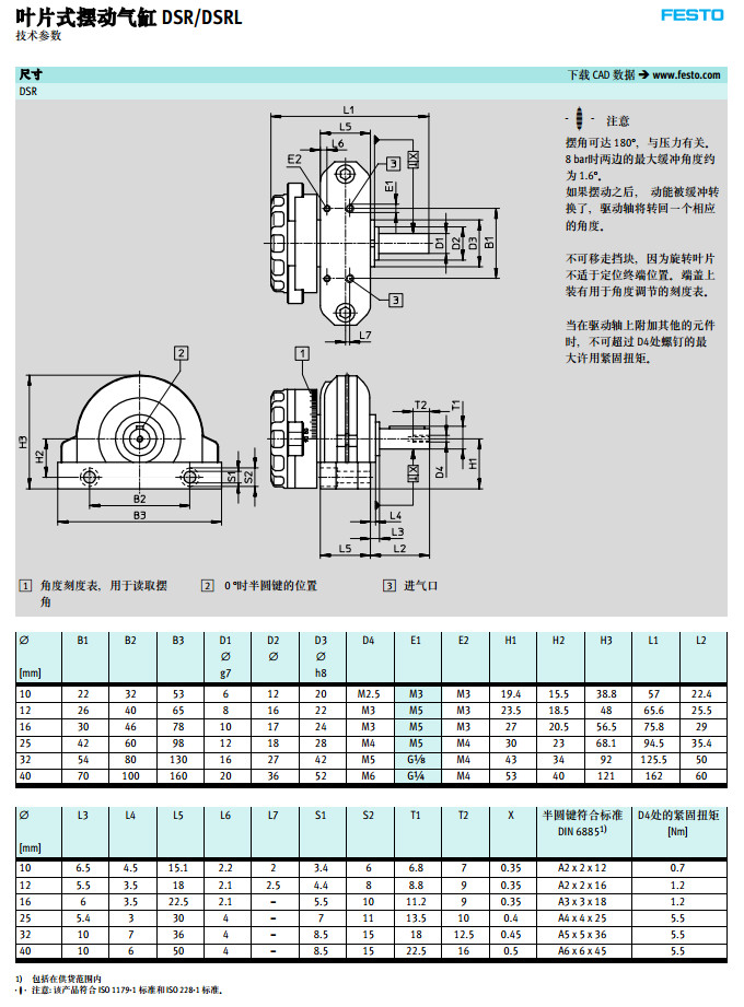 DSRL-10,DSRL-12,DSRL-16,DSR-25,DSR-32,DSR-40,festo葉片式擺動氣缸 |