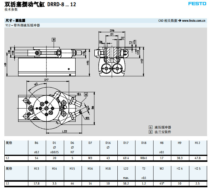 DRRD-8-180-FH-PA,DRRD-10-180-FH-PA,DRRD-12-180-FH-PA,festo擺動(dòng)氣缸