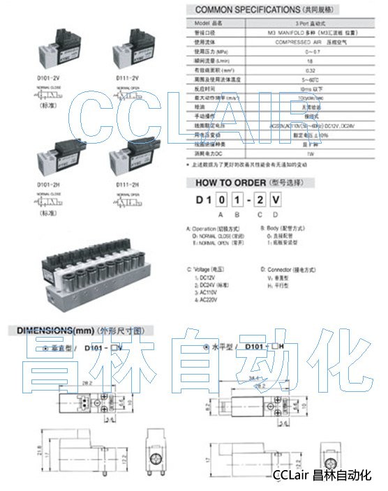 詳細(xì)信息 D101-1V,D101-2V,D101-3V,D101-4V,3通直動型電磁閥