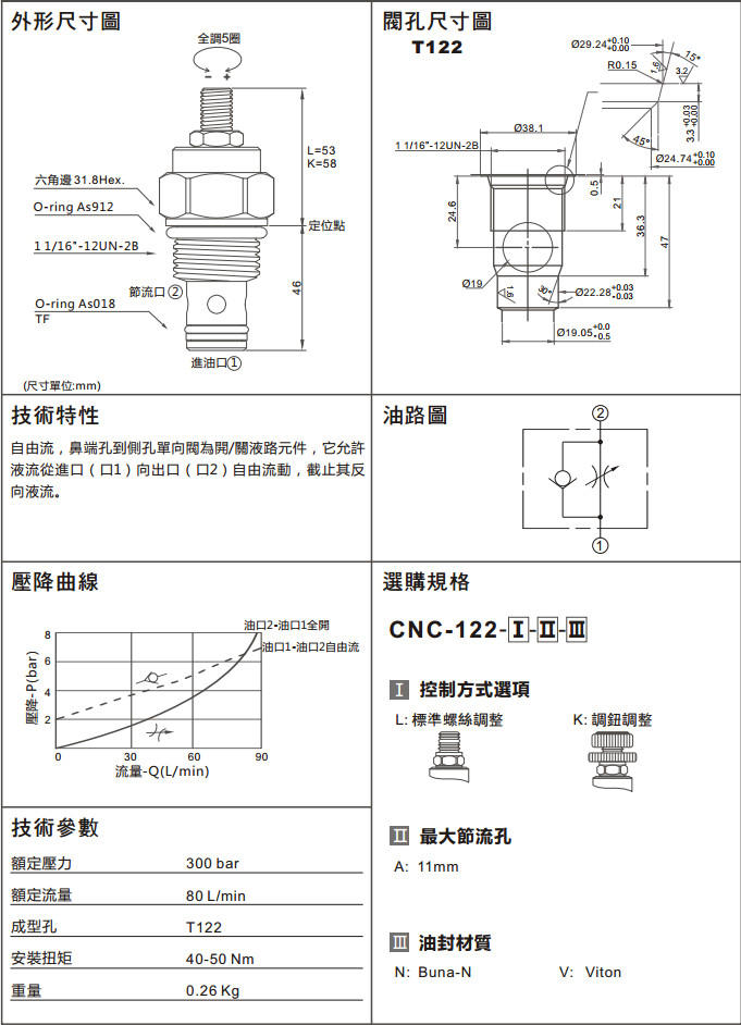 詳細(xì)信息 CNC-122-LAN,CNC-122-LAV,CNC-122-KAN,CNC-122-KAV,流量控制閥(全調(diào)型節(jié)流閥,附止回)