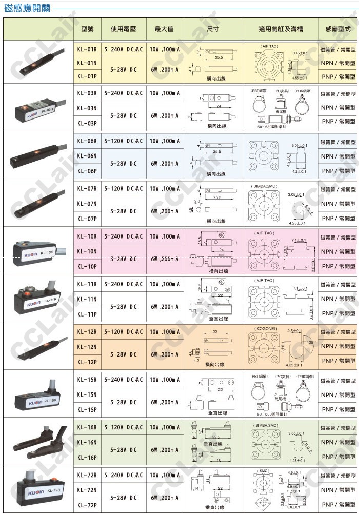 KL-01,KL-03,KL-06,KL-07,KL-10,KL-11,KL-12,KL-15,KL-16,KL-72,國鷹KUOIN磁感應(yīng)開關(guān) |
