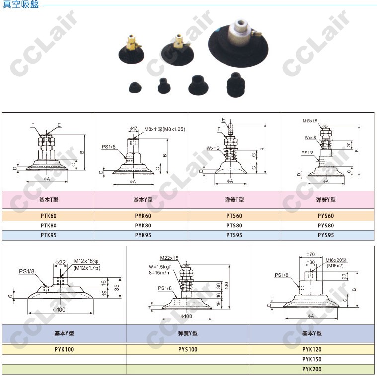 PTK60,PTK80,PTK95,PTS60,PTS80,PTS95,PYS60,PYS80,PYS95,PYS100,國鷹KUOIN真空吸盤