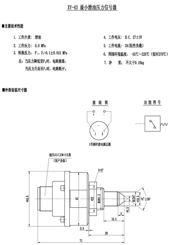 產(chǎn)品: 瀏覽次數(shù):667XY-43,最小滑油壓力信號器