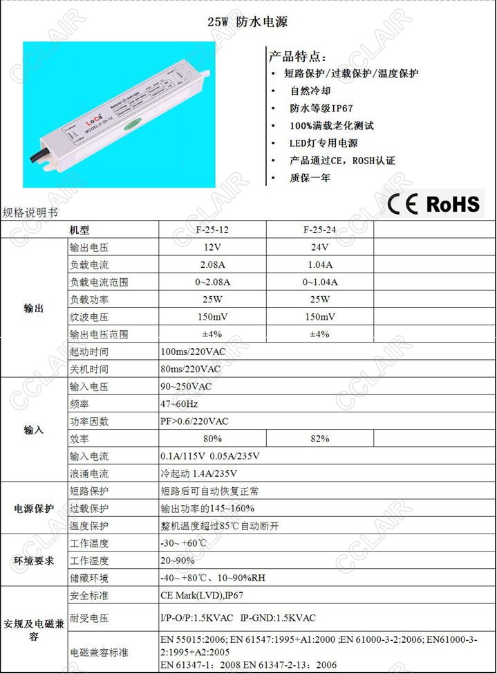 » F-25-12,F-25-24,F-25,鋁殼防水電源