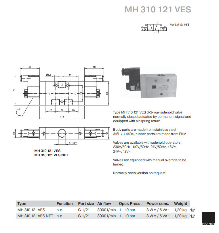 MH310121VES,MH310121VESNPT,Hafner電磁閥