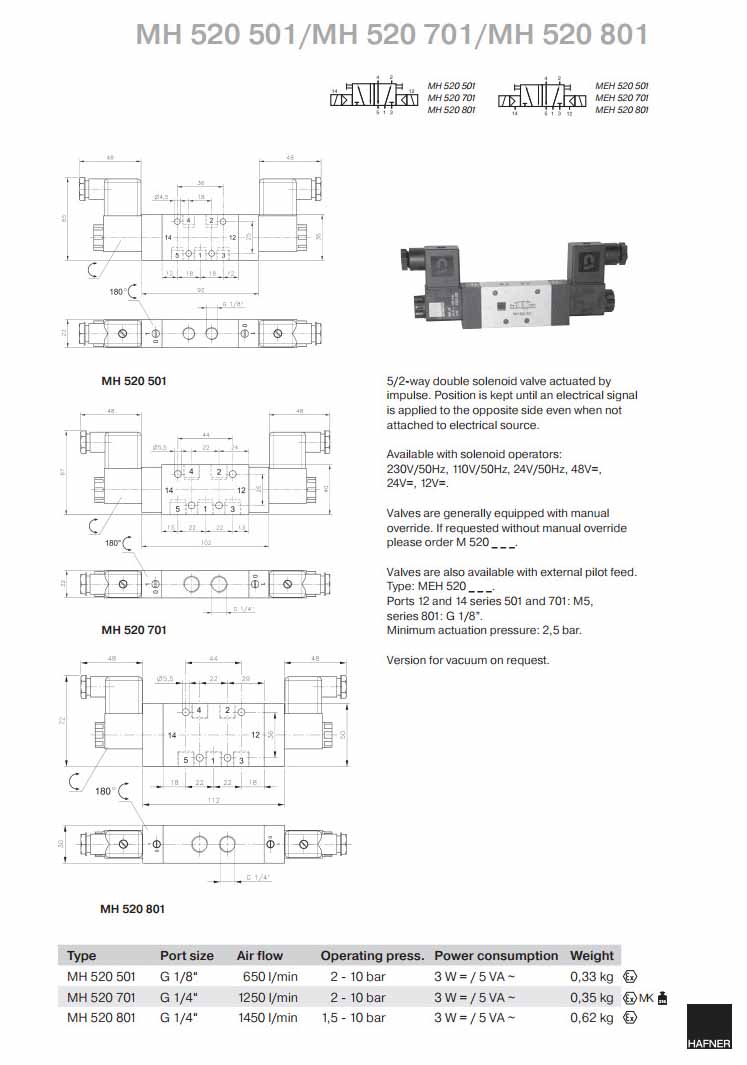 MH520501,MH520701,MH520801,Hafner電磁閥
