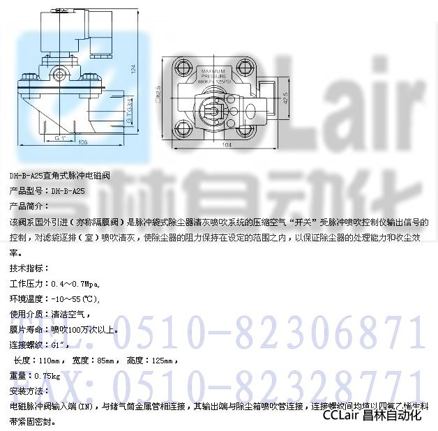 詳細(xì)信息 DH-B-A25,直角式脈沖電磁閥