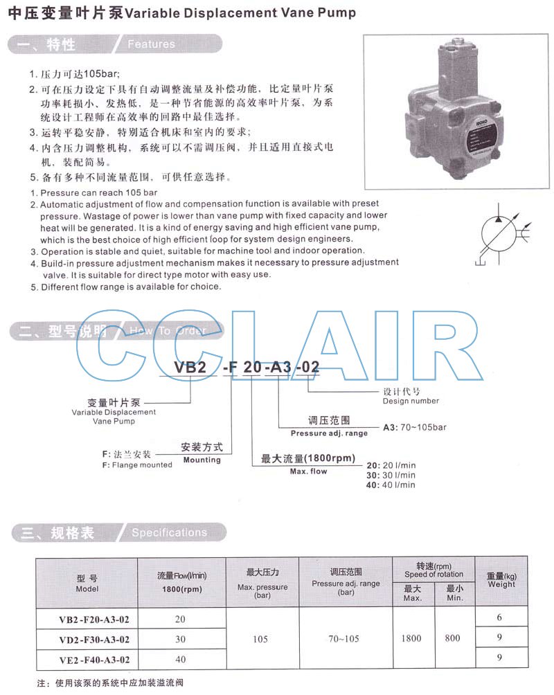 VB2-F20-A3-02,VD2-F30-A3-02,VE2-F40-A3-02,中壓變量葉片泵 無錫昌林