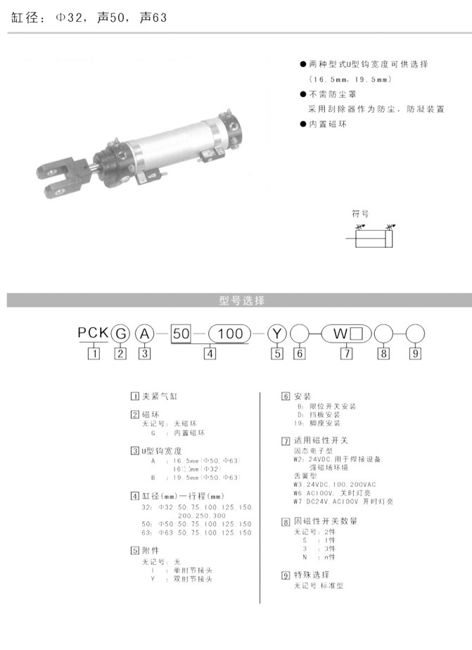 PCKA-32-50,PCKA-32-75,PCKA-32-100,PCKGB-63-75,PCKGB-63-100,夾緊氣缸PCK系列