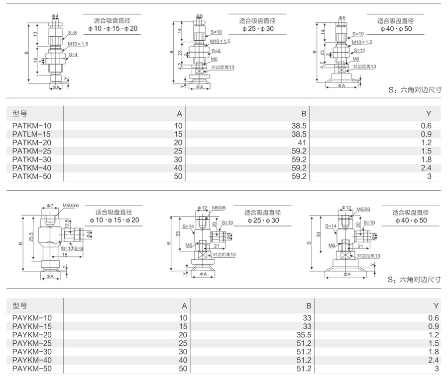 PATKM-10A-N,PATKM-10A-S,PATKM-10A-NE,PATKM/PAYKM系列薄型吸盤附緩沖式金屬底座及快速接管型