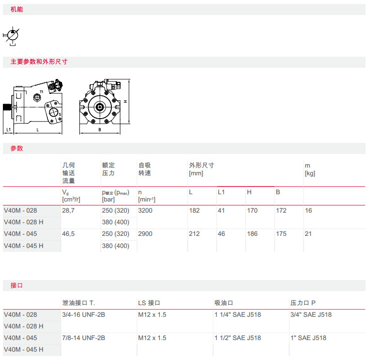 V40M-028LTXV-2V40M-028 HLTXV-2V40M-045LTXV-2V40M-045HLTXV-2,變量軸向柱塞泵