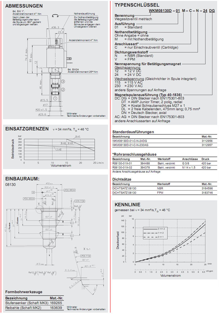 WKM08130D-01-C-N-24DG,WKM08130D-01-C-N-230AG,HYDAC二位三通方向滑閥