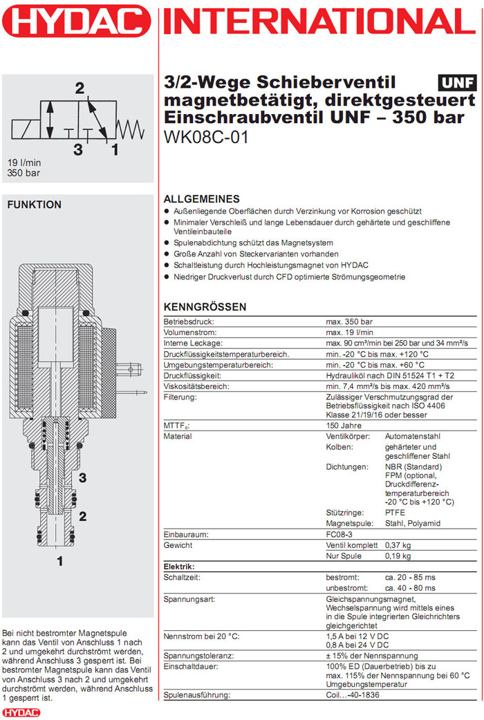 WK08C-01-C-N-12DG,WK08C-01-C-N-24DG,WK08C-01-C-N-230AG,HYDAC二位三通方向滑閥