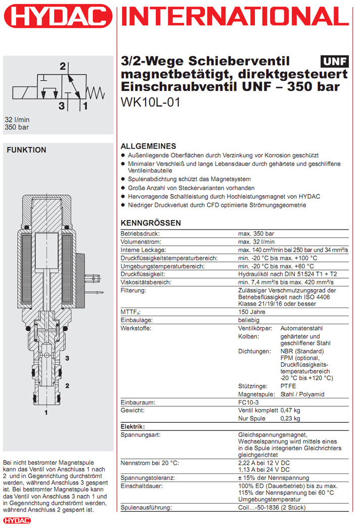 首頁 > 產(chǎn)品&解決方案 > WK10L-01-C-N-24DG,WK10L-01-C-N-230AG,HYDAC二位三通方向滑閥