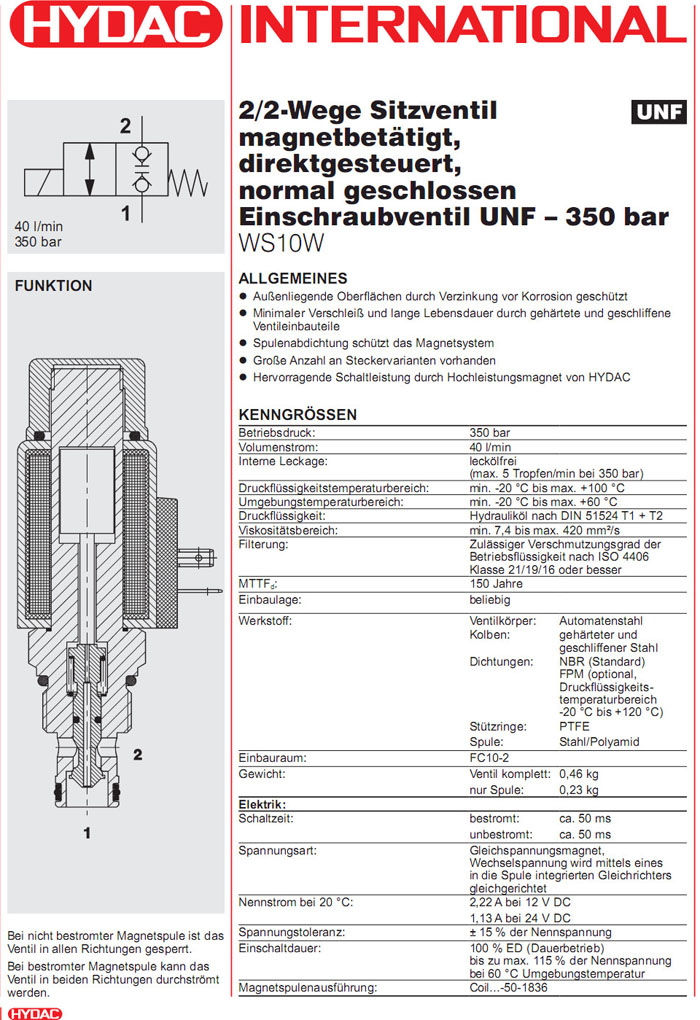 HYDAC直動式2/2方向閥