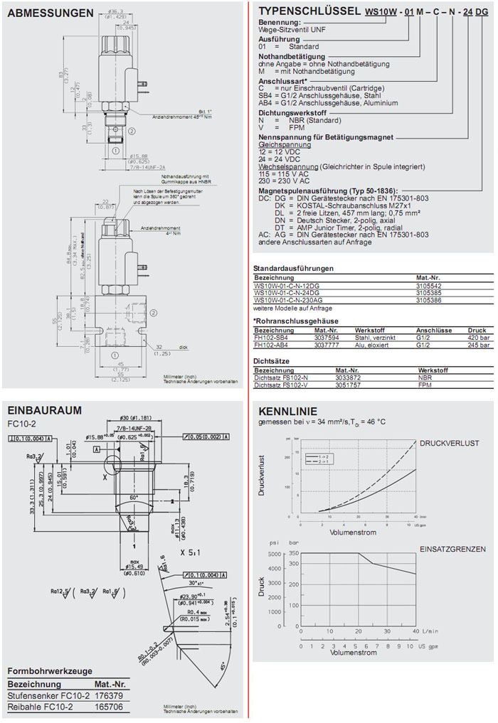WS10W-01-C-N-12DG,WS10W-01-C-N-24DG,WS10W-01-C-N-230DG,HYDAC電磁2/2方向座閥