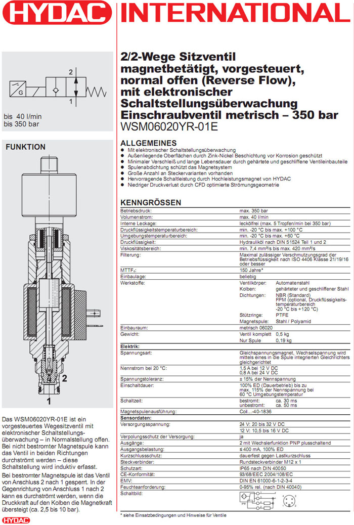 首頁 > 產(chǎn)品&解決方案 > WSM06020YR-01E-C-N-12DG,WSM06020YR-01E-C-N-24DG,HYDAC電磁2/2方向座閥