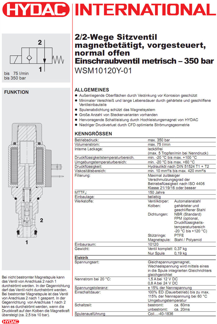 WSM10120Y-01-C-N-24DG,WSM10120Y-01-C-N-230AG,HYDAC電磁2/2方向座閥