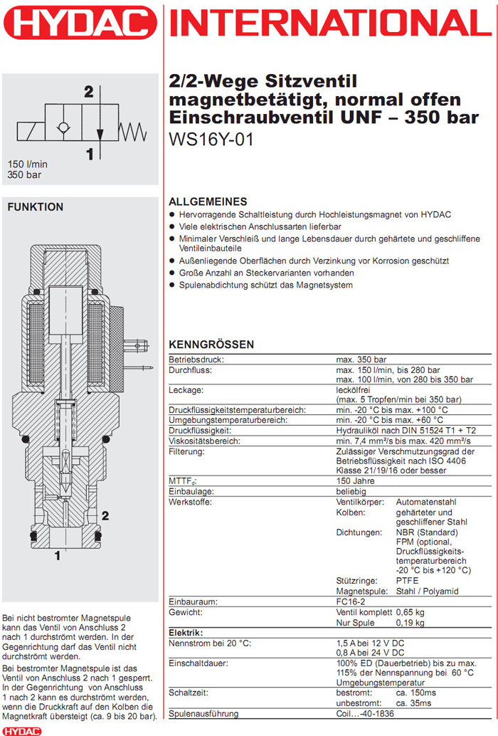 首頁 > 產(chǎn)品&解決方案 > WS16Y-01-C-N-24DG,WS16Y-01-C-N-230AG,HYDAC電磁2/2方向座閥