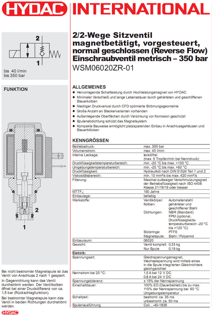 首頁 > 產(chǎn)品&解決方案 > WSM06020ZR-01-C-N-24DG,WSM06020ZR-01-C-N-230AG,HYDAC電磁2/2方向座閥