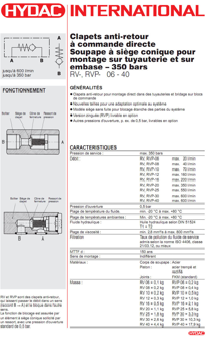 RVP-06,RVP-08,RVP-10,RVP-12,RVP-16,RVP-20,RVP-25,RVP-30,RVP-40,RVP-06-01.1,HYDAC止回閥