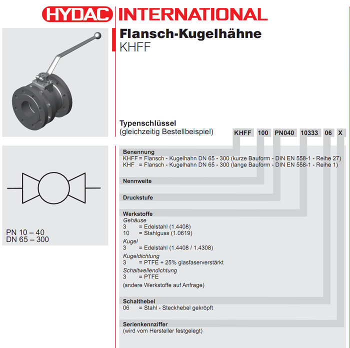 KHFF-100-PN040-10333-06X,HYDAC 2路低壓球閥