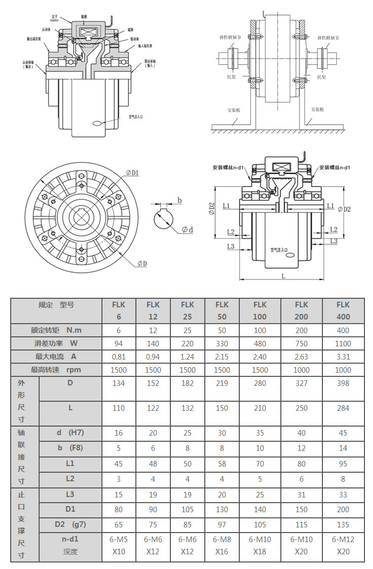 FLK6,FLK12,FLK25,FLK50,FLK100,FLK200,FLK400,空心軸磁粉離合器