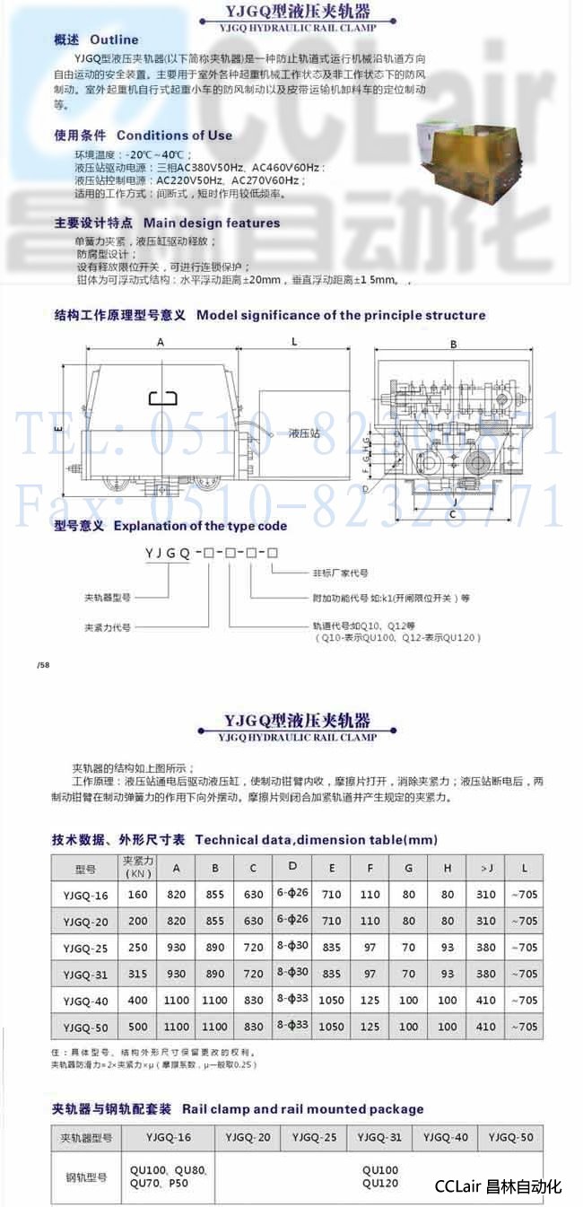 詳細(xì)信息 YJGQ-16,YJGQ-20,YJGQ-25,YJGQ-31,YJGQ-40,YJGQ-50,YJGQ-60,液壓夾軌器