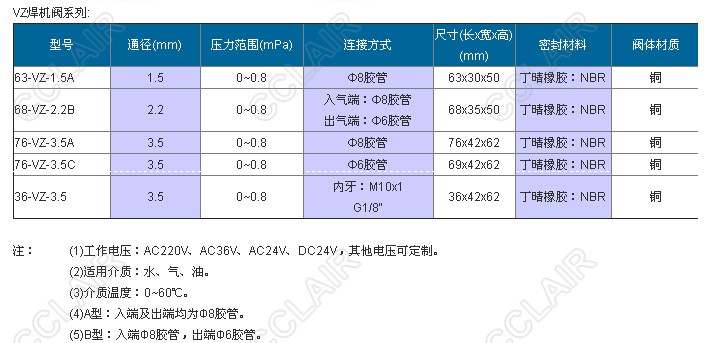 63-VZ-1.5A,68-VZ-2.2B,76-VZ-3.5A,76-VZ-3.5C,36-VZ-3.5,焊機專用電磁閥