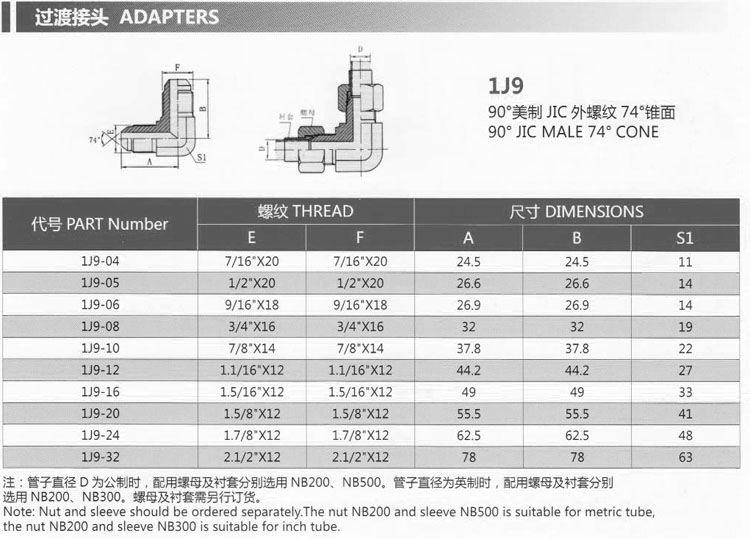 詳細(xì)信息 1J9-04,1J9-05,1J9-06,1J9-08,1J9-10,1J9-12,1J9-16,1J9-20,1J9-24,1J9-32,過(guò)渡接頭