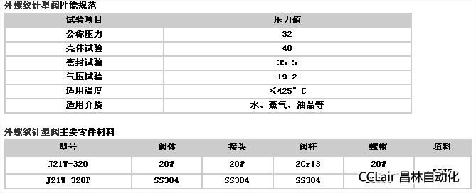 詳細(xì)信息 J21W-320,J21W-320P,外螺紋針型閥