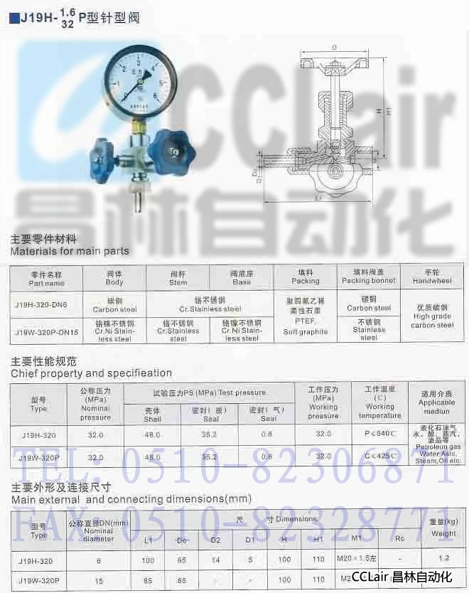 詳細(xì)信息 J19H-320,J19H-320P,儀表針型閥