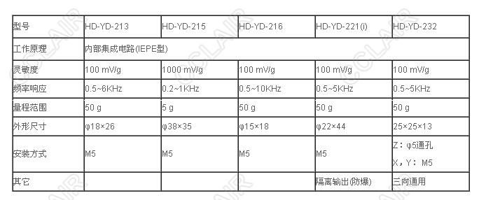 HD-YD-213,HD-YD-215,HD-YD-216,HD-YD-221(i),HD-YD-232,壓電式加速度傳感器
