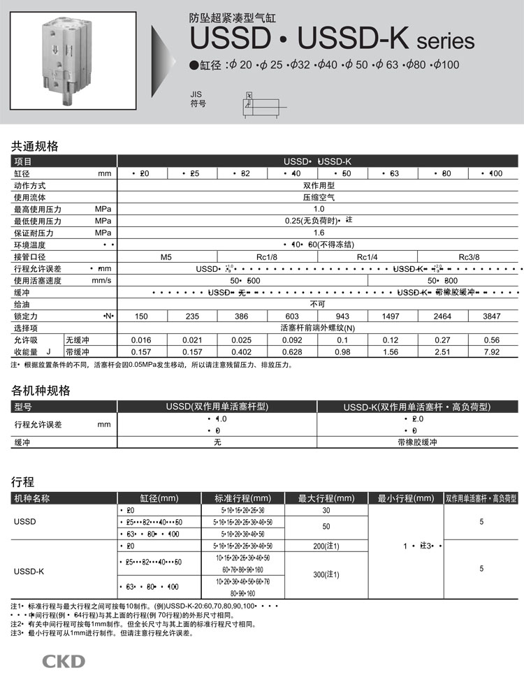 USSD-KL-63-90,USSD-KL-63-100,USSD-KL-80-10,USSD-KL-80-20,USSD-KL-80-30,USSD-KL-80-40,USSD-KL-80-50,CKD防墜超緊湊型氣缸