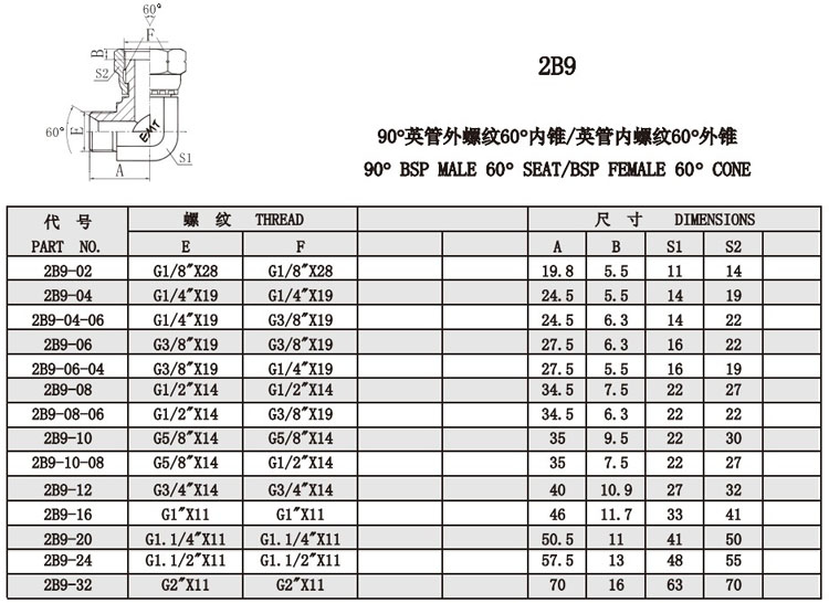 2B9-02,2B9-04,2B9-06,2B9-08,2B9-10,2B9-12,2B9-16,2B9-20,2B9-24,2B9-32,錐面密封接頭