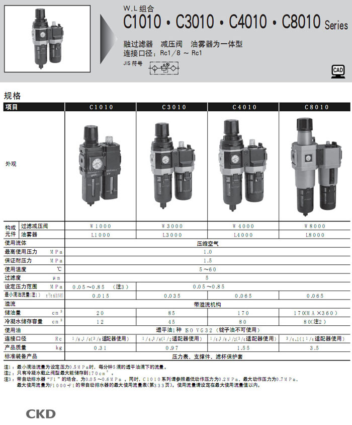 C1010-6,C1010-8,C3010-8,C3010-10,C4010-8,C4010-10,C4010-15,C8010-20,C8010-25,CKD二聯(lián)件