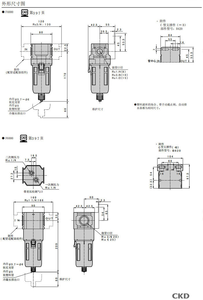 詳細(xì)信息 F1000-6,F1000-8,F3000-8,F3000-10,F4000-8,F4000-15,F6000-20,F6000-25,F8000-20,F8000-25,F4000-10,CKD空氣過濾器