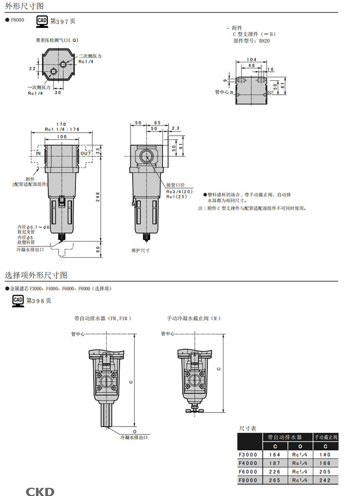 F1000-6,F1000-8,F3000-8,F3000-10,F4000-8,F4000-15,F6000-20,F6000-25,F8000-20,F8000-25,F4000-10,CKD空氣過濾器