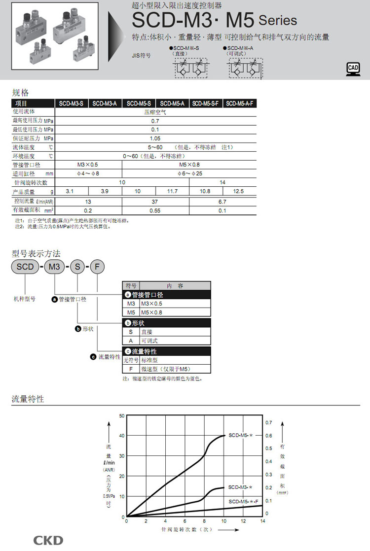 SCD-M3-S,SCD-M3-A,SCD-M5-S,SCD-M5-A,SCD-M5-S-F,SCD-M5-A-F,CKD速度控制器