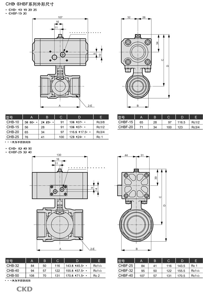 CHBF-R1-15-E,CHBF-R1-20-E,CHBF-R1-25-E,CHBF-R1-32-E,CHBF-R1-40-E,CKD氣動(dòng)式球閥2通閥