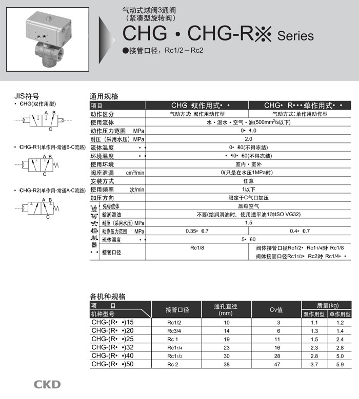 CHG-R1-15-E,CHG-R1-20-E,CHG-R1-25-E,CHG-R1-32-E,CHG-R1-40-E,CHG-R1-50-E,CKD氣動式球閥3通閥