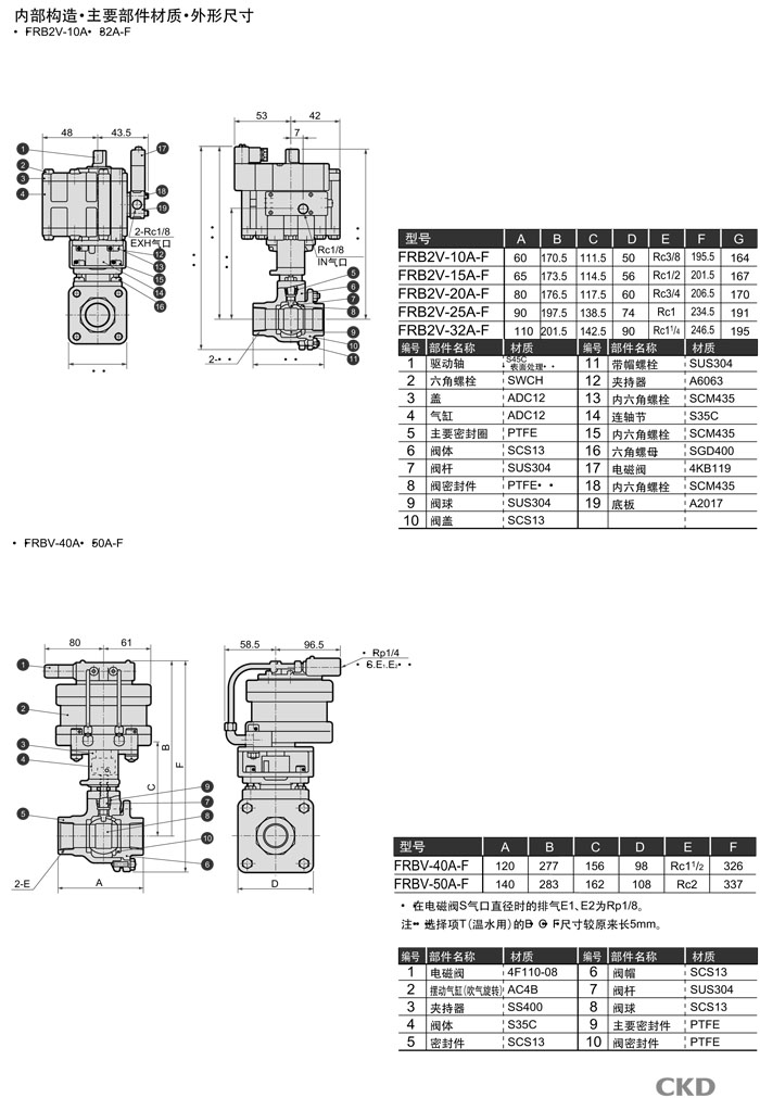 FRB2V-10A-F,FRB2V-15A-F,FRB2V-20A-F,FRB2V-25A-F,FRB2V-32A-F,FRBV-40A-F,FRBV-50A-F,CKD氣動式球閥2通閥