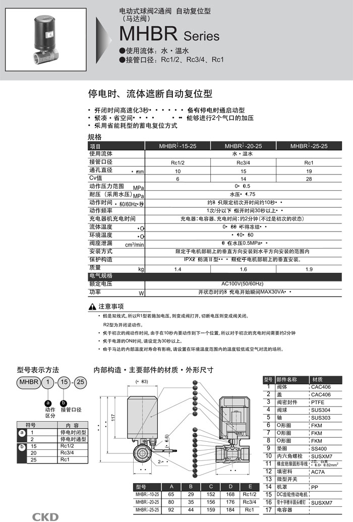 MHBR1-15-25,MHBR1-20-25,MHBR1-25-25,MHBR2-15-25,MHBR2-20-25,MHBR2-25-25,CKD電動(dòng)式球閥2通閥