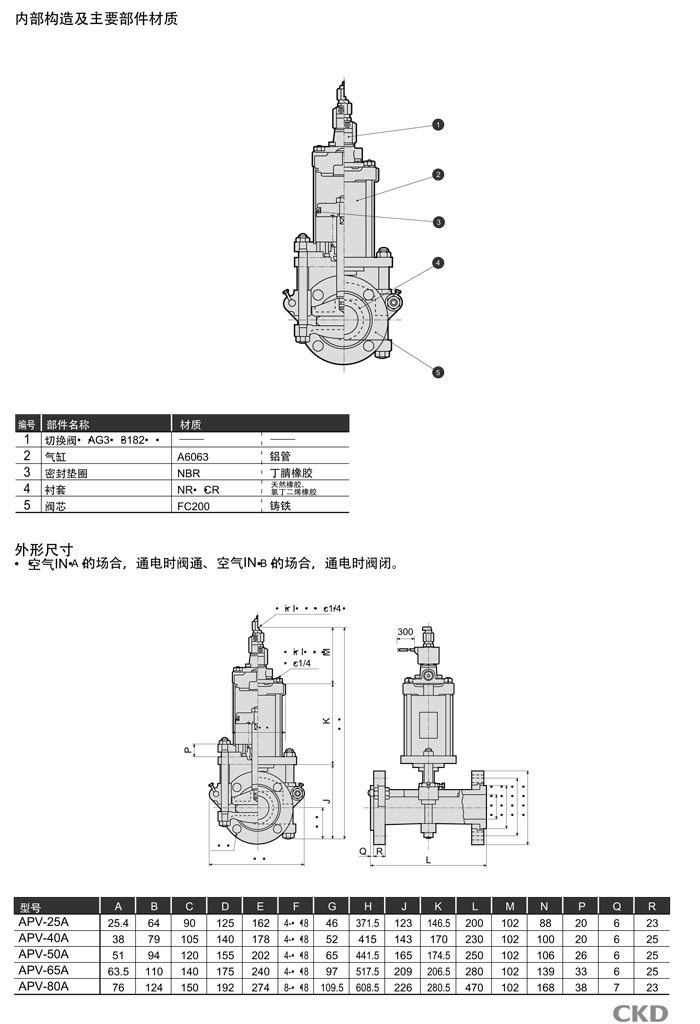 APV-25V-T-AC100,APV-40V-T-AC100,APV-50V-T-AC100,APV-65V-T-AC100,APV-80V-T-AC100,CKD自動式氣壓管夾閥