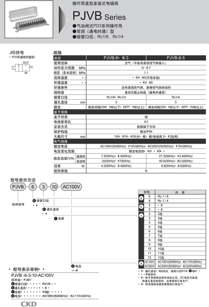 PJVB-6-3,PJVB-6-5,PJVB-8-3,PJVB-8-5,CKD多連式電磁閥