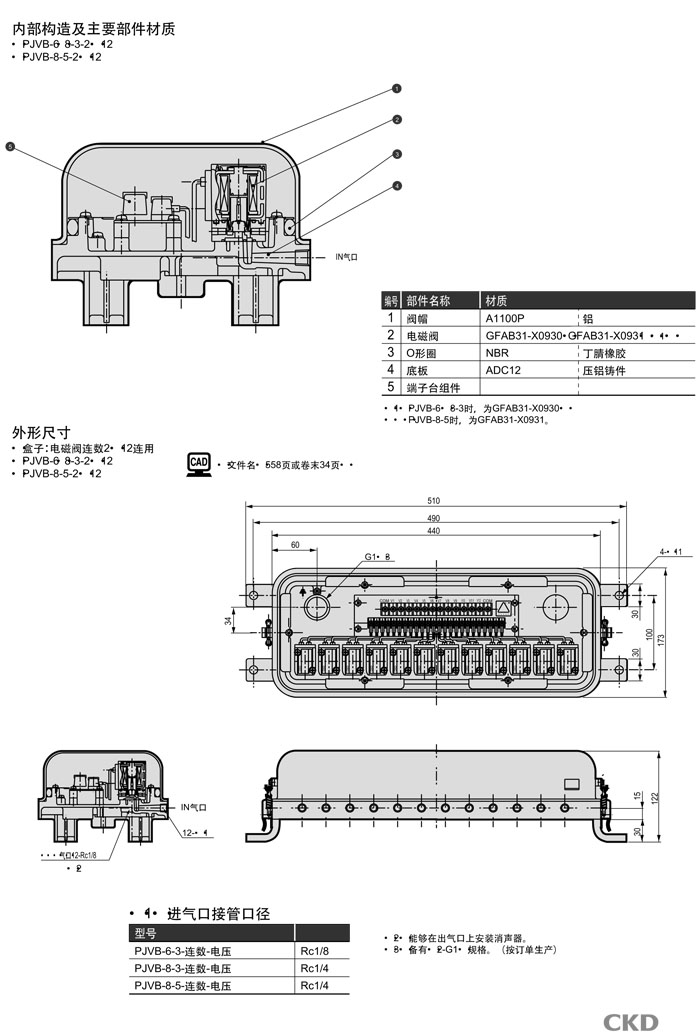 詳細信息 PJVB-6-3,PJVB-6-5,PJVB-8-3,PJVB-8-5,CKD多連式電磁閥